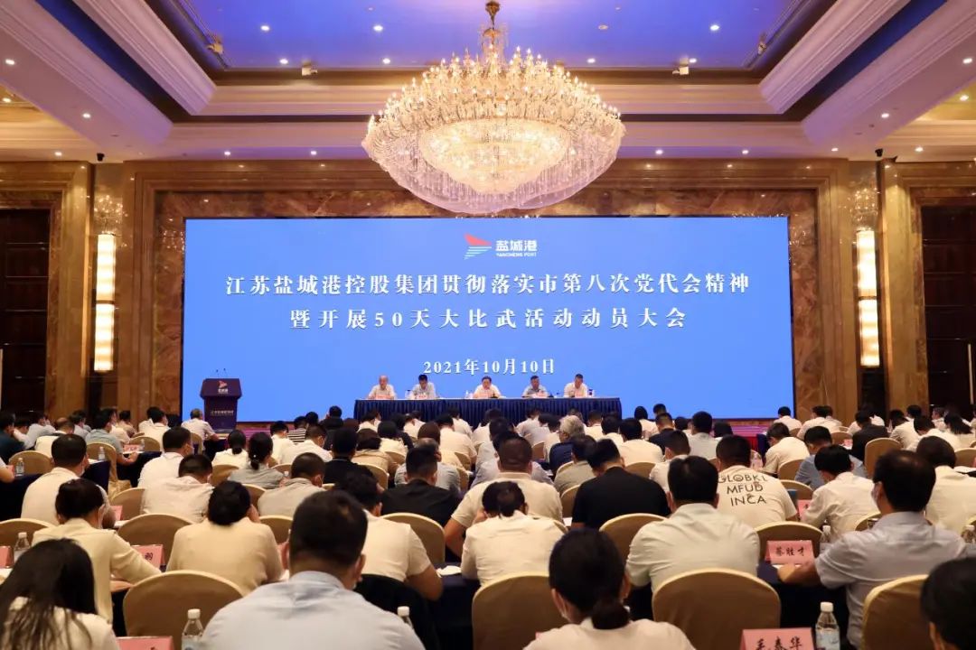 10月10日,集團(tuán)召開貫徹落實(shí)市第八次黨代會精神暨開展50天大比武活動動員大會,集團(tuán)黨委書記、董事長、總經(jīng)理周正雄出席會議并講話。集團(tuán)黨委委員、紀(jì)委書記周旭東主持會議。集團(tuán)黨委委員、董事、副總經(jīng)理丁安廣、夏立新、陳正華,集團(tuán)機(jī)關(guān)全體工作人員,集團(tuán)各二級子(控)公司班子全體成員、各部門負(fù)責(zé)人,各內(nèi)河港區(qū)、水上服務(wù)投資公司班子全體成員,鹽城港引航站班子及部門負(fù)責(zé)人,集團(tuán)三級及以下子(控)公司主要負(fù)責(zé)人等參加會議。