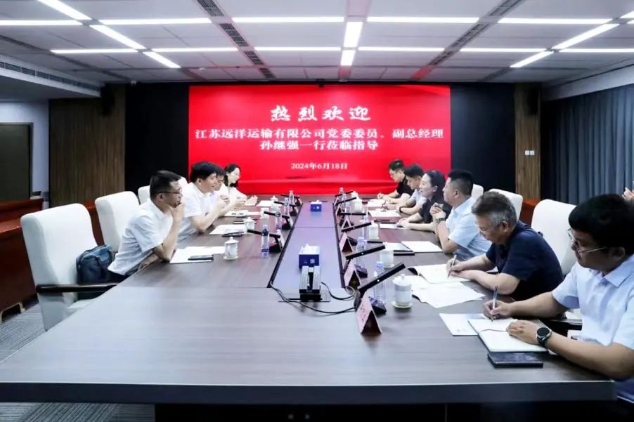 6月18日,江蘇遠洋運輸有限公司黨委委員、副總經理孫繼強率隊拜訪我集團,就開展業務合作進行交流。集團副總經理袁欣接待孫繼強一行,集團相關負責同志等參加。