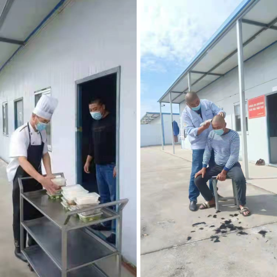 封閉不封愛,溫暖一直在。大豐港區港口公司為專班職工專門配備了廚師,菜品每天不重樣,葷素合理搭配,保證了伙食質量,讓專班職工們吃得既干凈又營養;隔離居所里提供了許多生活用品以及創可貼、酒精、繃帶等常用醫藥用品,并有后勤保障人員清理衛生和處置防護用品;閑暇之時,專班人員自覺組織學習防疫知識,還會進行下象棋、打籃球等文體娛樂活動,生活中的種種細節都能體現出港口大家庭的濃濃親情。他們為我們撐起藍天,我們做他們的堅強后盾,大豐港區時刻傾聽他們心中所想、積極解決他們生活所需、努力消除他們后顧之憂。