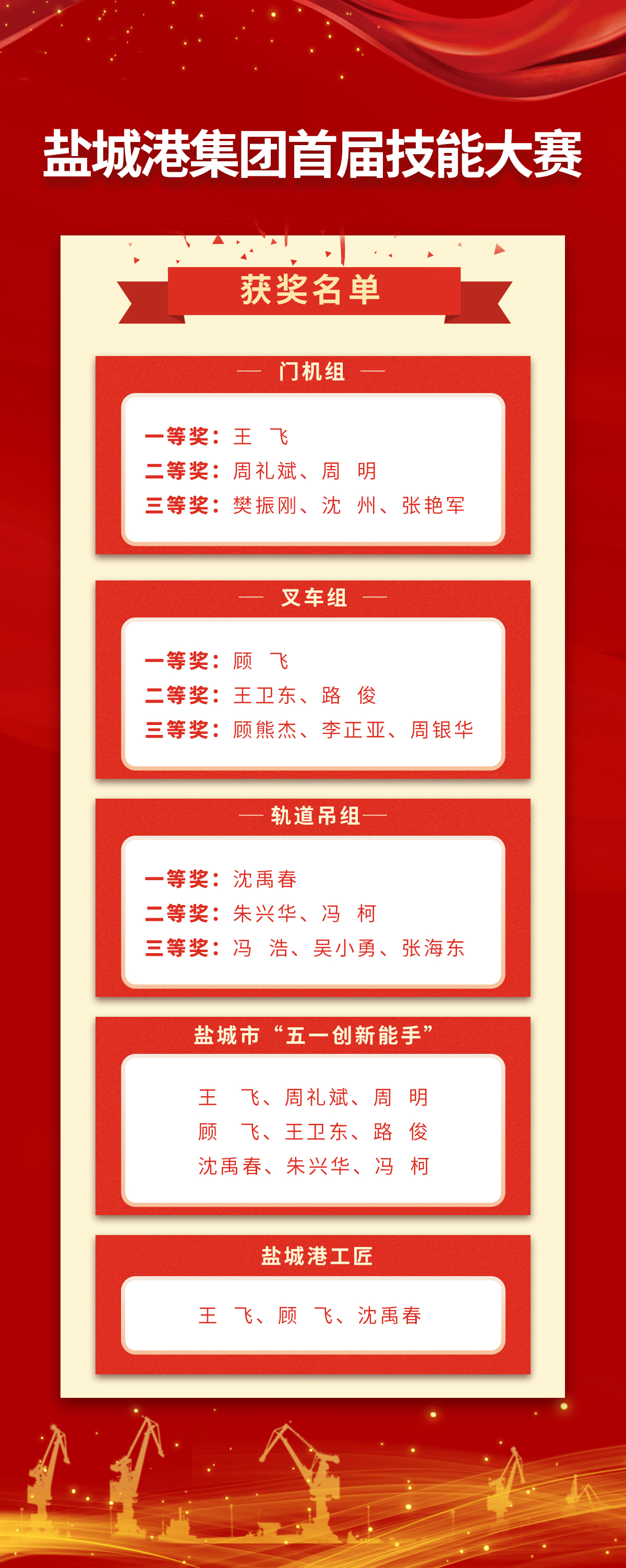 鹽城港集團首屆技能大賽獲獎名單