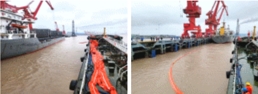 近日,江蘇響水港港務公司在4#泊位開展船舶溢油應急處置聯合演練。