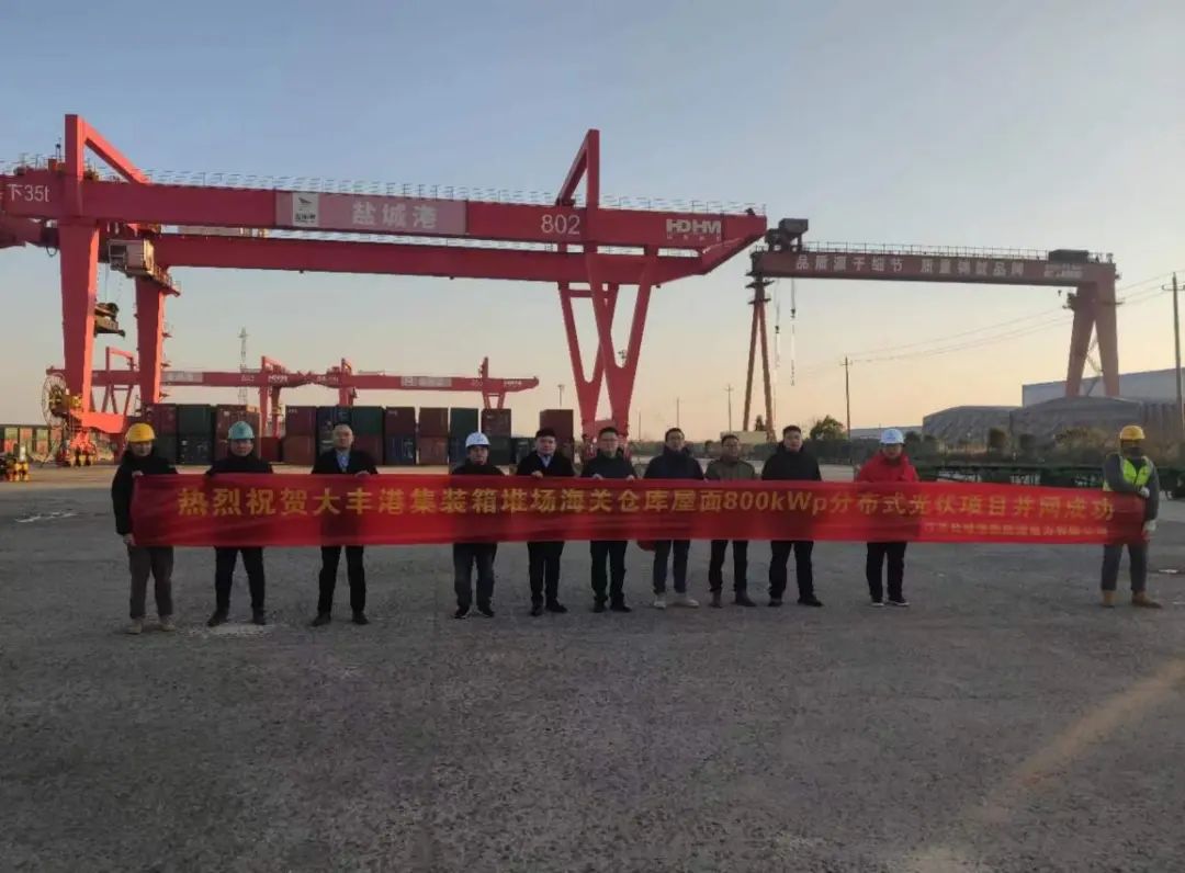 目前鹽城港各港區倉儲屋面分布廣泛,光伏裝機容量正穩步提升,新能源電力公司始終堅持以“五新港口”建設為引領,尋求清潔能源高質量發展,充分發掘港區資源優勢,打造鹽城港“微電網”,通過綠電覆蓋港區用電,實現“零碳港口”目標。本次并網發電的光伏電站位于大豐港區海關倉庫、自動化集裝箱堆場,項目采用“自發自用,余電上網”模式,在優化港區能源結構的同時有效減少港區對傳統能源的依賴。