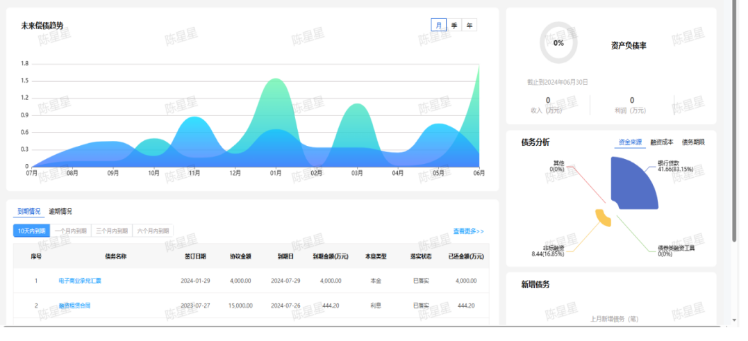 為實現財務標準化,每一筆融資發生后,第一時間將貸款的所有數據更新至系統,實現每一筆還款無遺漏,保證資金還款的安全性。同時,系統可生成債務結構,通過直觀的餅狀圖顯示,了解港區的債務情況,及時作出合理提款計劃,調優融資結構。