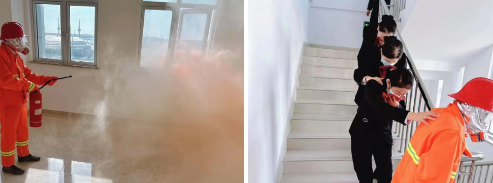 消防知識講座從火災的分類、消防器材的使用、保養(yǎng)等方面向大家生動講解了消防安全重要性。實操模擬火災現(xiàn)場,保安組臨危不懼,一隊手提滅火器、拔掉保險銷、對準火焰根部噴射,“大火”很快被撲滅;另一隊指揮大家用濕毛巾捂住口鼻,彎腰低姿態(tài)前行,有序地撤離到安全區(qū)域。通過培訓演練,進一步增強了安全意識和臨危不亂的心理素質(zhì),以實際行動筑牢了港區(qū)的“防火墻”。