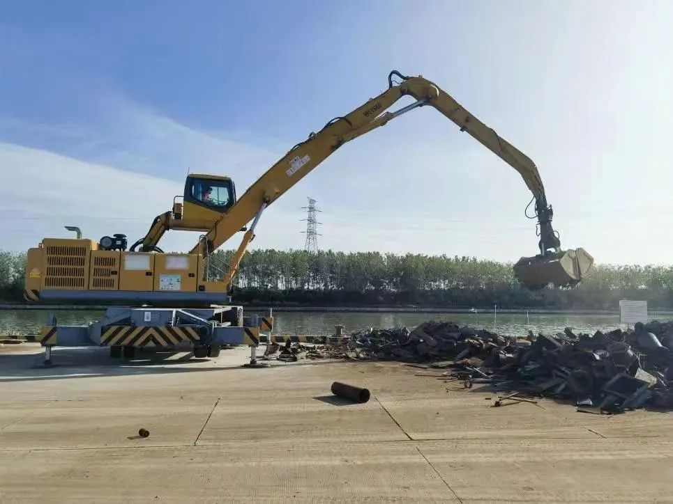 為切實解決作業(yè)效率低下的問題,亭湖港區(qū)調(diào)度組與創(chuàng)新團隊多次研究,最終確定使用抓料機作業(yè),同時為防止抓料機抓取廢鋼對抓斗造成損傷,團隊還特別制定抓料機改造方案,通過兩根定制鋼絲繩將電磁吸盤安裝到抓料機抓斗下方,并通過電纜線路改造,抓料機駕駛員可以在駕駛抓料機的同時操控吸盤。由于抓料機的靈活機動,可以自由伸縮抓臂,作業(yè)現(xiàn)場不再需要裝載機司機的參與。自改造實施后,港區(qū)廢鋼生產(chǎn)作業(yè)耗時耗力的難題得到了有效解決,極大地提高了港區(qū)生產(chǎn)運營效率,該項改進創(chuàng)新在保證安全的基礎(chǔ)上,共節(jié)省人工2名,作業(yè)時長由4天節(jié)省為2天,作業(yè)效率提高50%。
