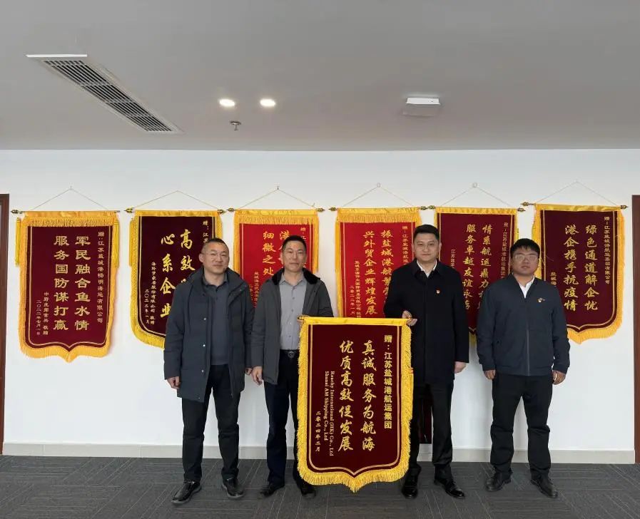 3月11日,香港汭灃航運(yùn)有限公司、上海禛航船務(wù)有限公司代表送來了寫有“真誠(chéng)服務(wù)為航海,優(yōu)質(zhì)高效促發(fā)展”“兩在兩同建新功 真心為企情誼濃”字樣的錦旗,對(duì)鹽城港航運(yùn)集團(tuán)、智慧港口公司長(zhǎng)期以來提供的優(yōu)質(zhì)高效的服務(wù)表達(dá)感謝之情。