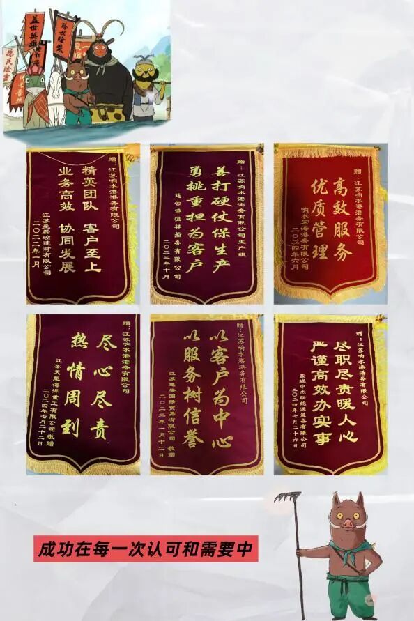 墻上那一面面客戶送來的錦旗,無聲卻滾燙。它們背后,是響水港區對每一次作業的全力以赴,是專題班前會上的周密部署,是堆存、倒運、裝卸每一環的精細管控,是始終如一的專業與誠意。正是這種專業與堅持,讓響水港區一次次贏得客戶的交口稱贊。他們沒有驚天動地的口號,卻有用行動織就的信任;他們沒有華麗炫目的光環,卻有點滴積累起來的口碑。